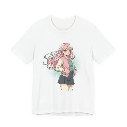 Anime Girl Graphic Tee — Pink-Haired Schoolgirl Illustration T-Shirt